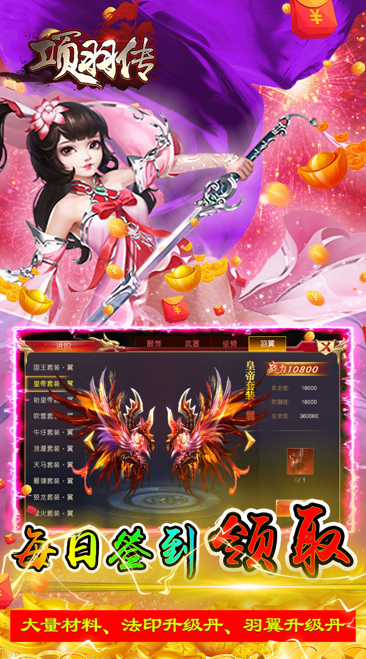项羽传(问鼎天下)成长礼包 升星丹礼包*10、升星石*7、铜钱50w