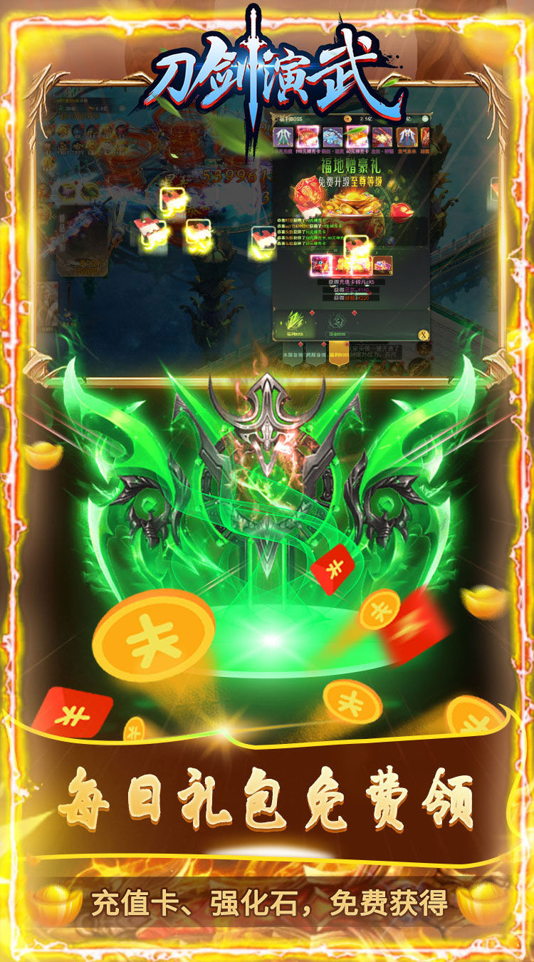 刀剑演武(挂机领真充)新手礼包 元宝*10000,铜钱*500000,3级宝石箱*1