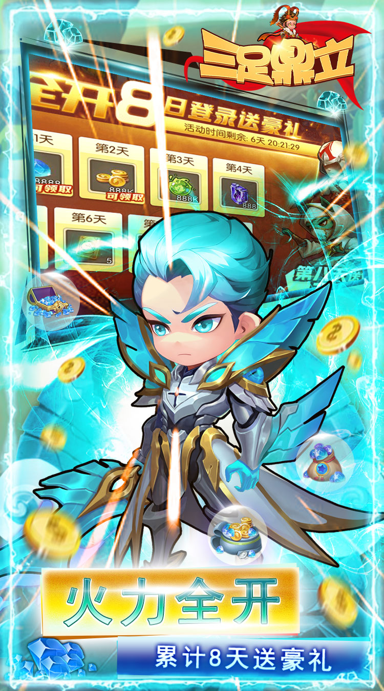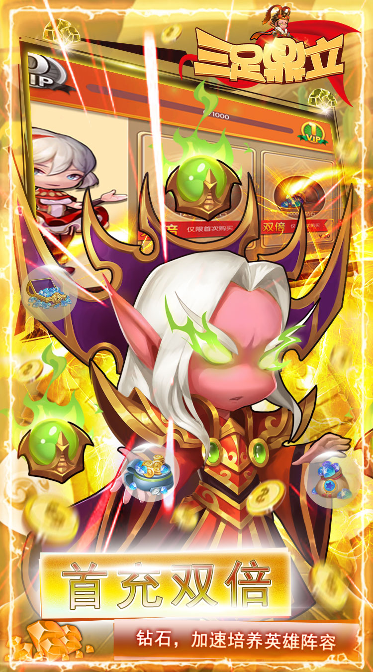 《三足鼎立》是一款以即时PVP为核心的超人气卡牌手游,挂机,在线,登陆,爬塔无限送连抽,连抽送不停,英雄猛升星,福利直接拉满!塔防新套路,六大种族英雄任意搭,战斗新体验,开启爽快激斗新感觉。百万福利大派送,助你打造做强阵容!