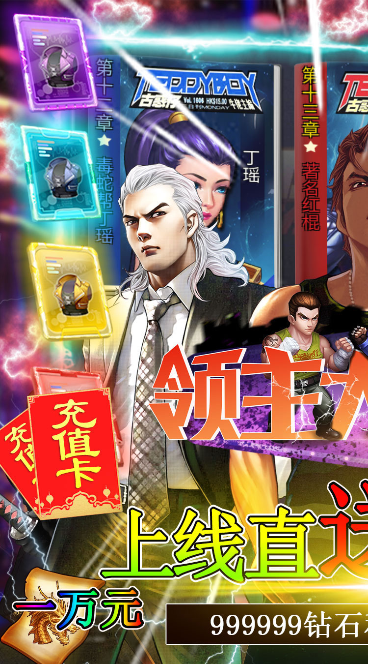 充值比例: 1:1000钻石 上线福利: 福利1:上线直送满GM到至尊 1,一万元充值卡,999999钻石和888万金币! 福利2:内置至尊修改器,每日免费刷充值,提升至尊等级,刷更多充值! 福利3:至尊商城满星补给一步到位! 福利4:每日签到免费领取648充值卡,福利狂飙! 福利5:成长目标达成免费奖励主角全属性加成!