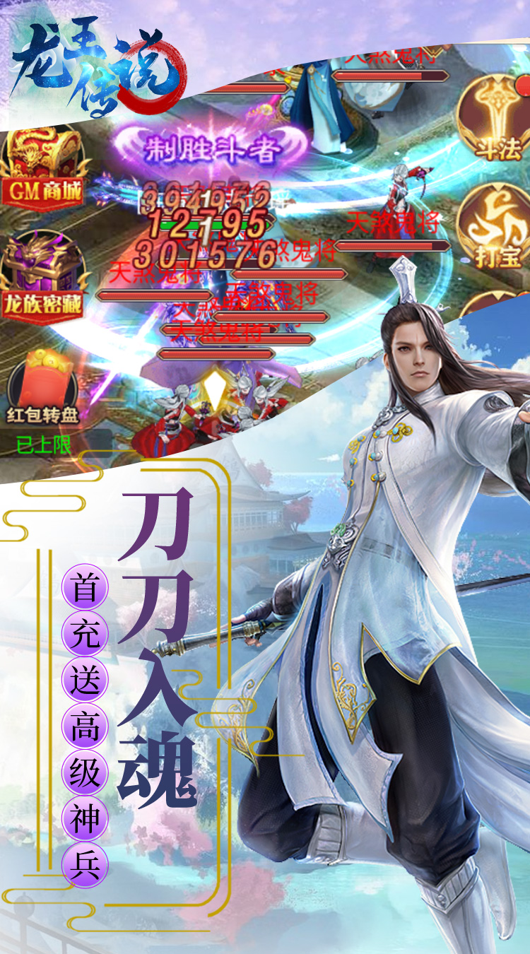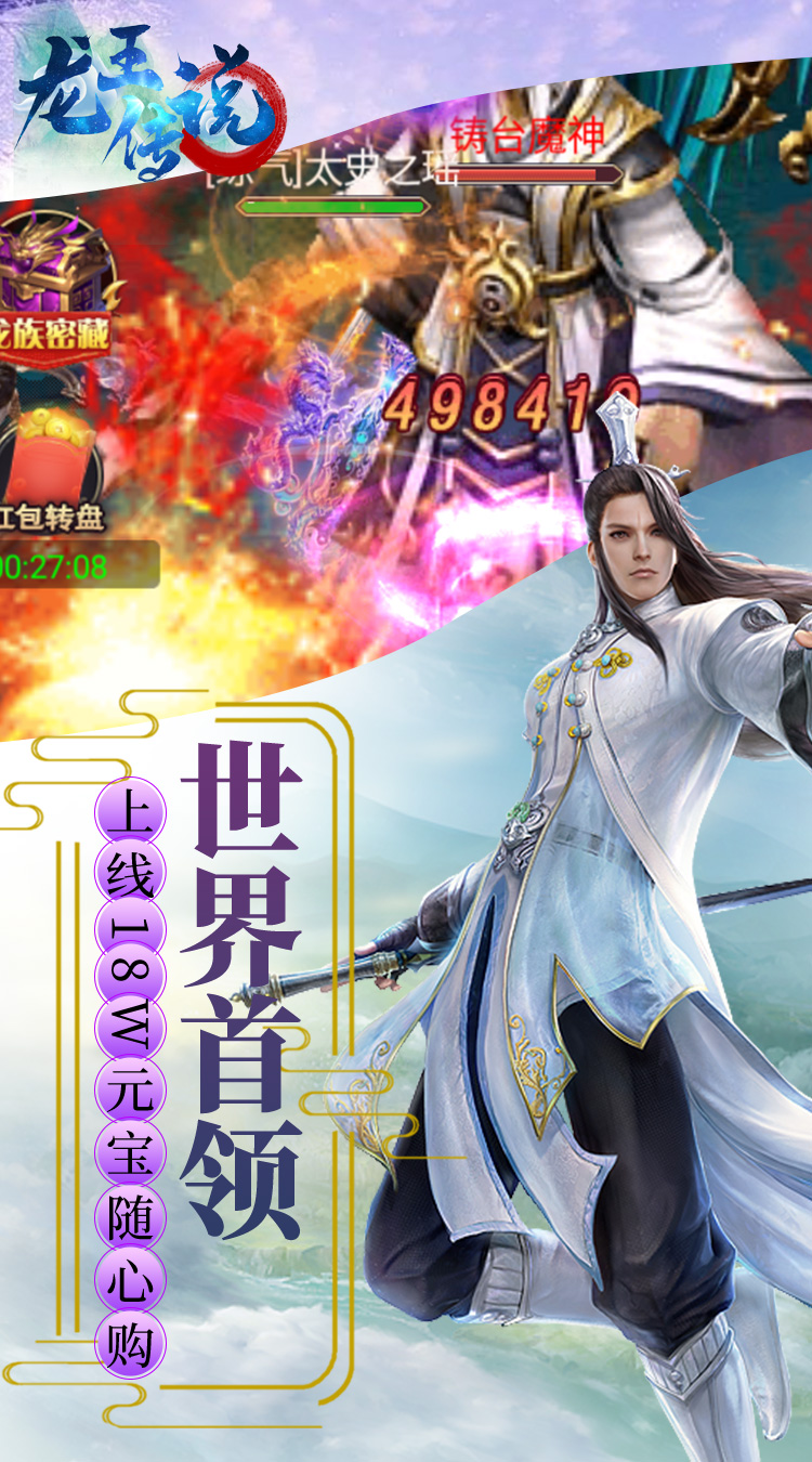 《龙王传说(送万元红包)》上线免费送188888元宝,10000000铜钱,10000000剑意,这是一款国风写实2.5D的仙侠RPG产品,手持3把光武战斗的游戏;仙魔灵3种族切换。各类法宝多重变身,脚踩法轮、背装翅膀、怀抱美人。在这里你将转世到虚构的修真世界展开一段全新里程,游戏内用现代时尚的观念全新演绎神兵。