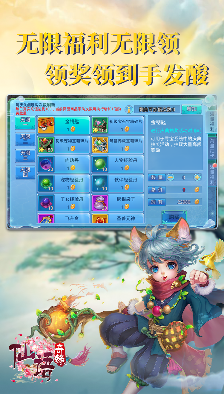 仙语奇缘(免费连抽)-新手礼包 抽奖券*1200,1元金币券*50,速度刻印*1