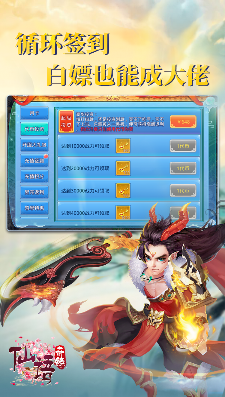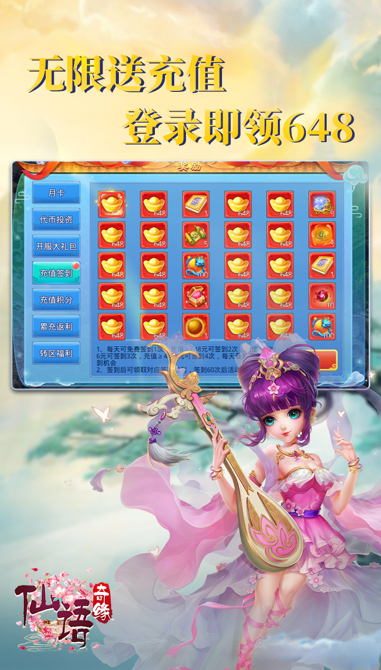 《仙语奇缘》是一款创新回合制手游,突出体验一个字爽,无限抽奖无限抽,抽到满意再领奖。充值签到送充值,签到就送二万充值,每天活跃还可以领取重置签到道具,领完签到再重置,无限重置无限送,零氪也可以做大佬。跨服星辰超爆率,羽翼超石掉不停,魂契圣技双觉醒,巅峰决战争定输赢。