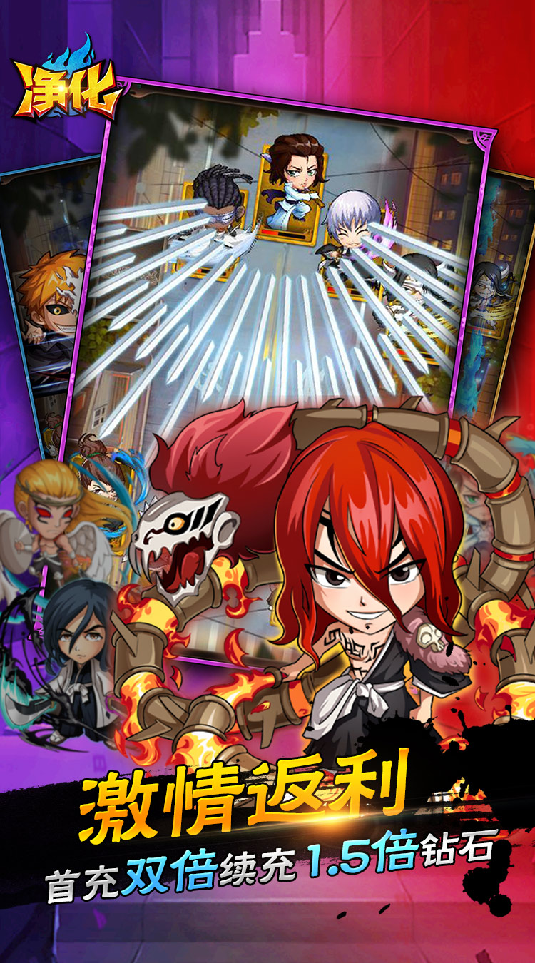 充值比例 1:1000 福利1:创角即送VIP20及对应特权,解锁超值特权礼包购买权限 福利2:上线赠送高级购买*100次(100抽) 福利3:上线送超强主角红卡黑崎一护,刀灵斩月