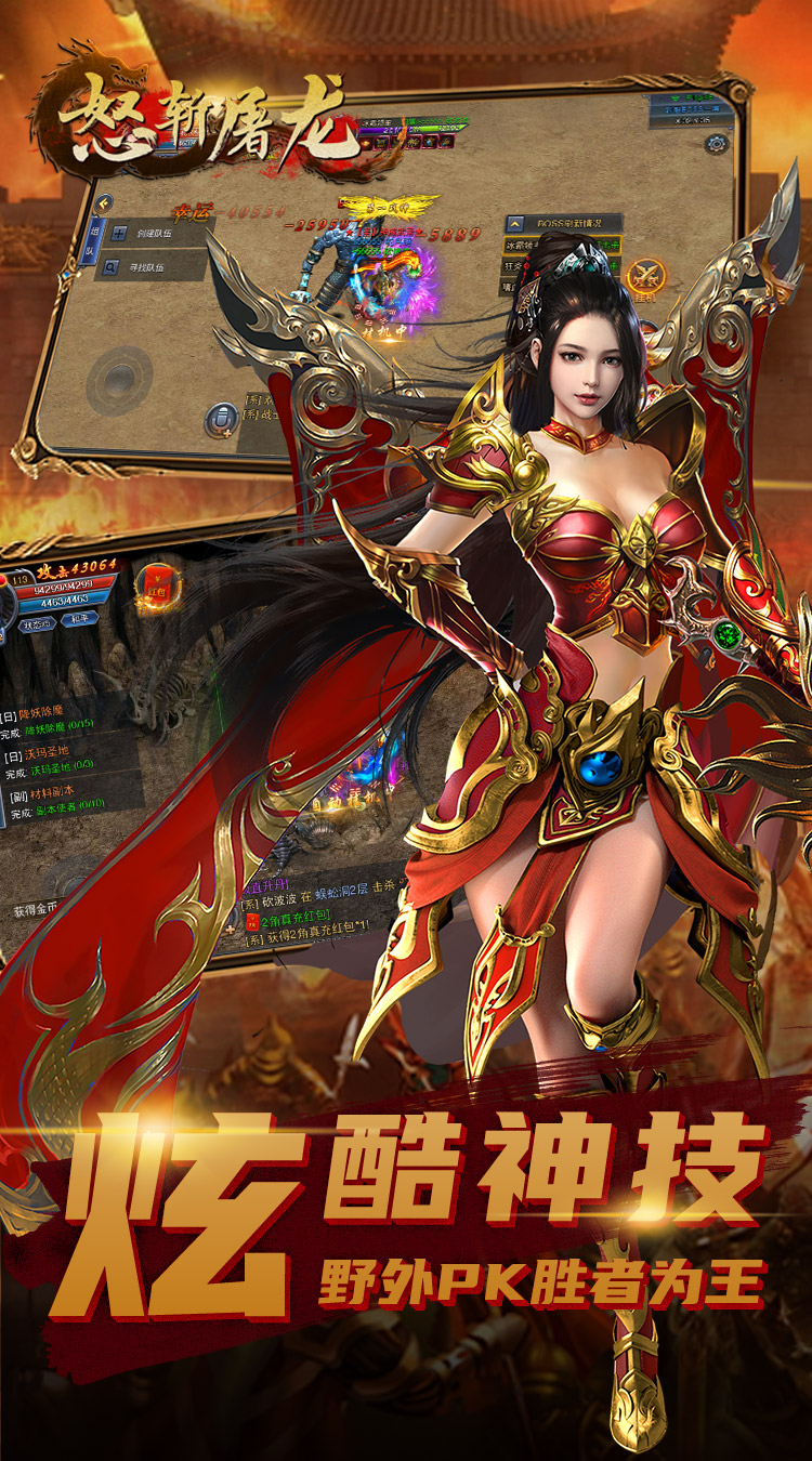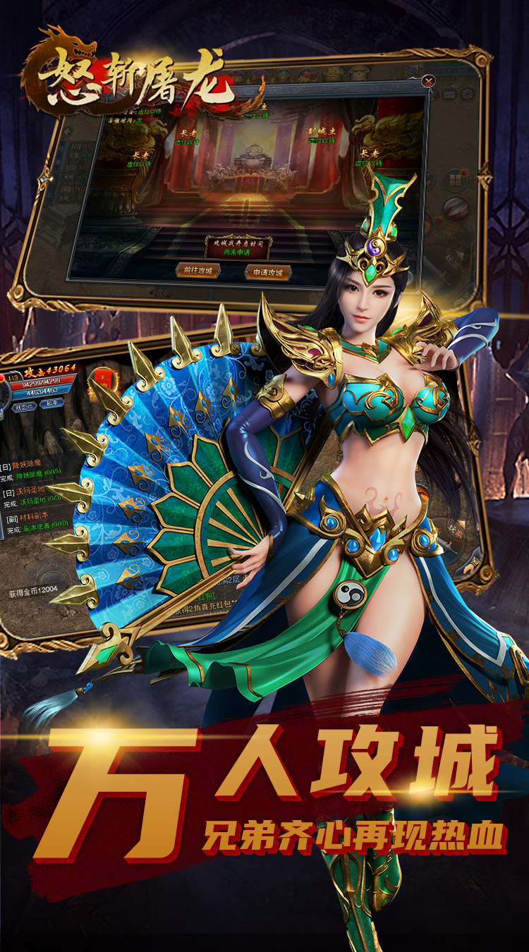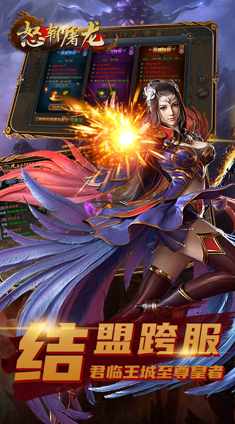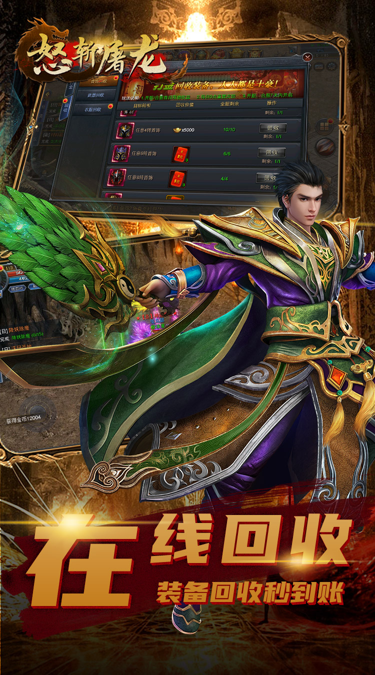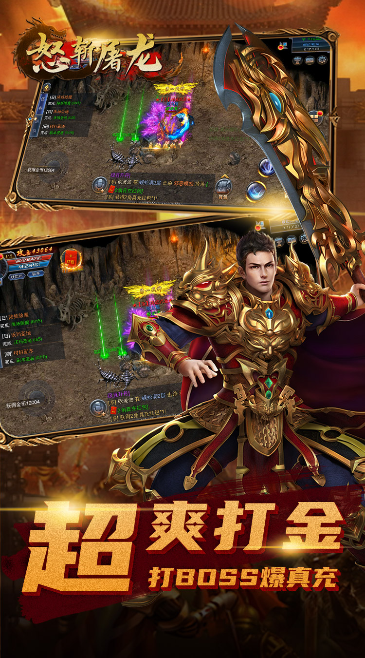 《怒斩屠龙》传承经典76版,高度还原端游战法道,重温经典。爽快的打击感,操作性更强,策略性更高,让你体验超激情的万人攻沙。超高的BOSS爆率,不花一分冤枉钱,所有装备都可以爆。更有真正的元宝回收装备,让你在享受打宝激情的同时更能轻松获得不菲的收入。实时跨服大战,让你每日激情满满威名远扬,真正的横扫千军!