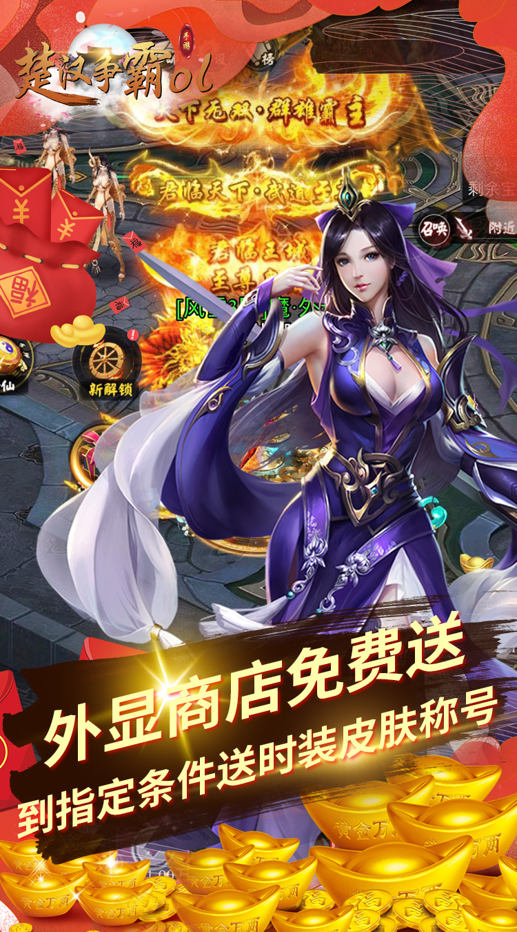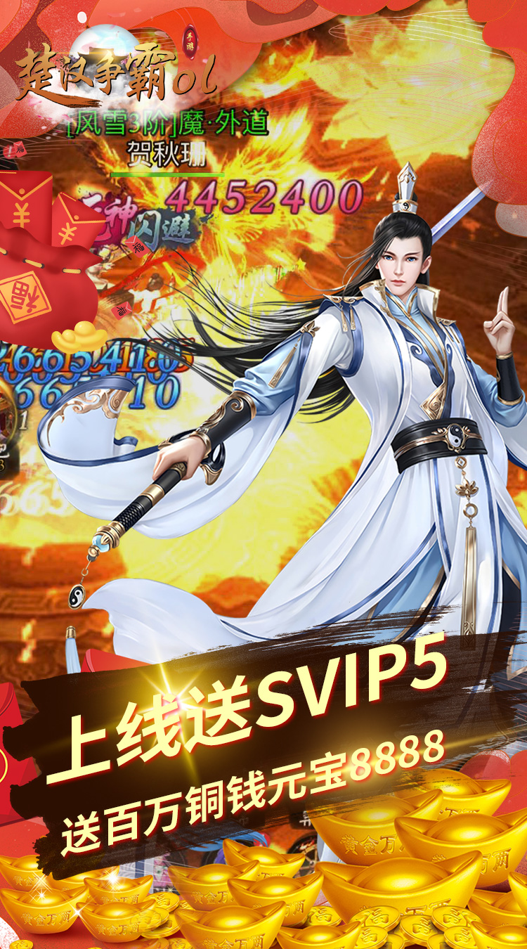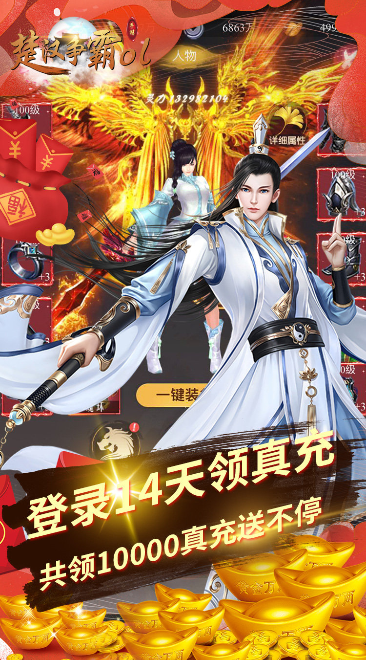 楚汉争霸OL手游(无限赚真充)-新手礼包 元宝6666,仙骑骑魂玉*10,仙骑飞升丹*10,器魂*100000