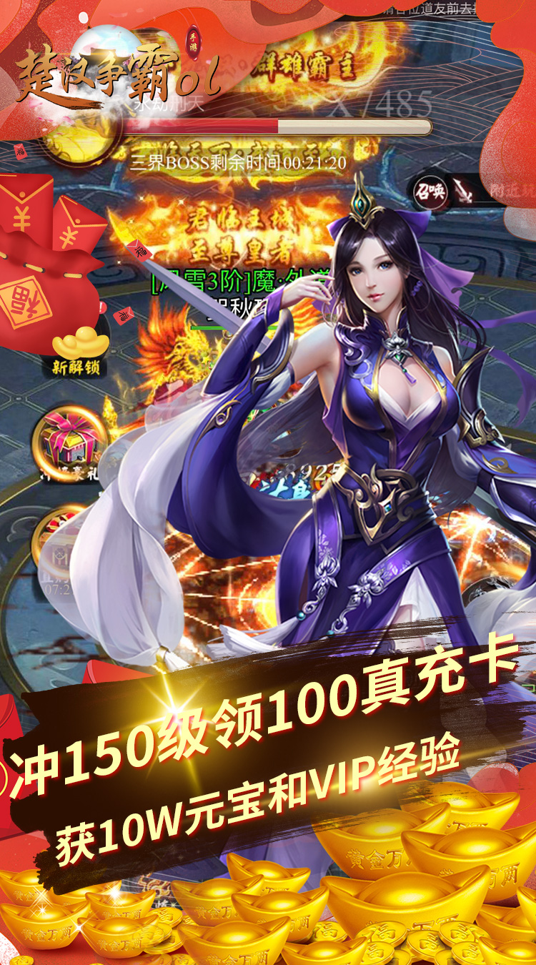 楚汉争霸OL手游(无限赚真充)-预约礼包 至尊福利*1,元宝5555,尸鲲*1