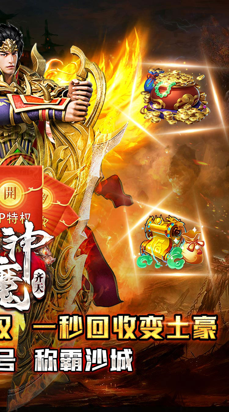 神魔齐天(GM分红版)新手礼包 高级转生丹x1,神装碎片x100,装备·寻宝卷x10,元宝x3000,金币x200000